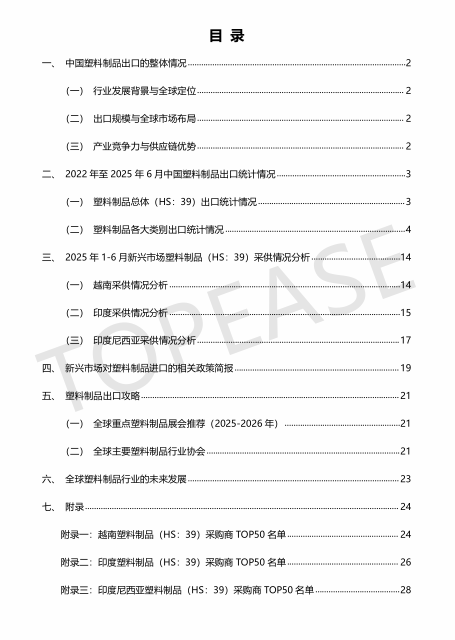适用对象:计划出海的中国塑料制品企业(制造业、零售业、包装业等)、外贸从业者,跨境投资机构、政府经贸部门,